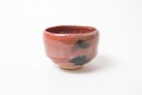 Sehr schöne, in einem wundervollen roten Ton gehaltene japanische Matchaschale (Chawan) für die japanische Teezeremonie, Motiv Nyoko-Raku. Die Matschaschale wurde im Raum Kyoto handgefertigt. Höhe der Schale ca. 8,5cm, Durchmesser ca. 11cm, sehr harter Brand.